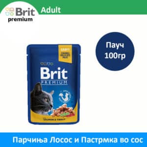 Brit Premium Adult Влажна храна за Возрасни мачки со Парчиња Лосос и Пастрмка во сос [Кесичка 100гр] 40 ден