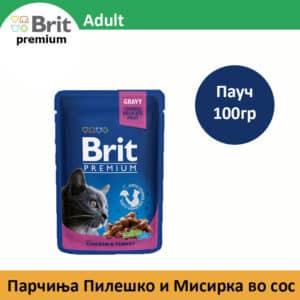 Brit Premium Adult Влажна храна за Возрасни мачки со Парчиња Пилешко и Мисирка во сос [Кесичка 100гр] 40 ден