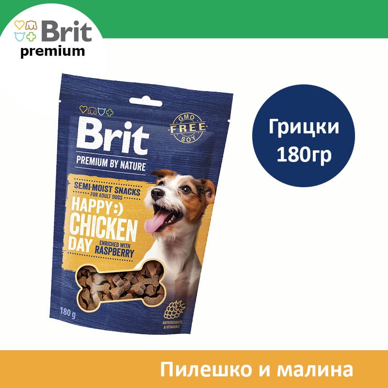 Brit Premium Happy Chicken полу-влажни грицки со малина [Кесичка 180гр]
