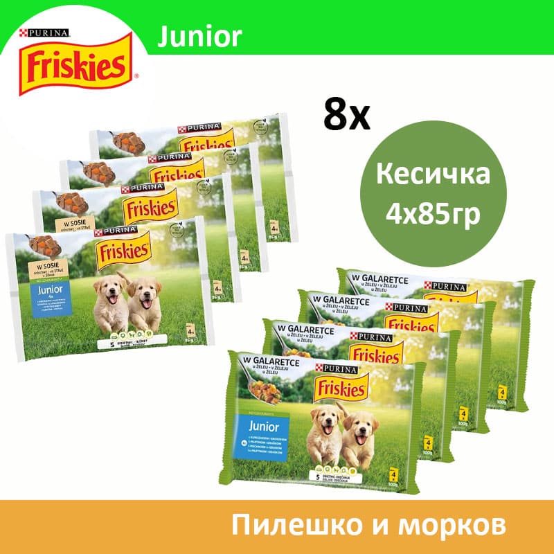 Friskies Junior Влажна храна за Кученца во раст СЕТ 8х [Кесичка 4×85гр]