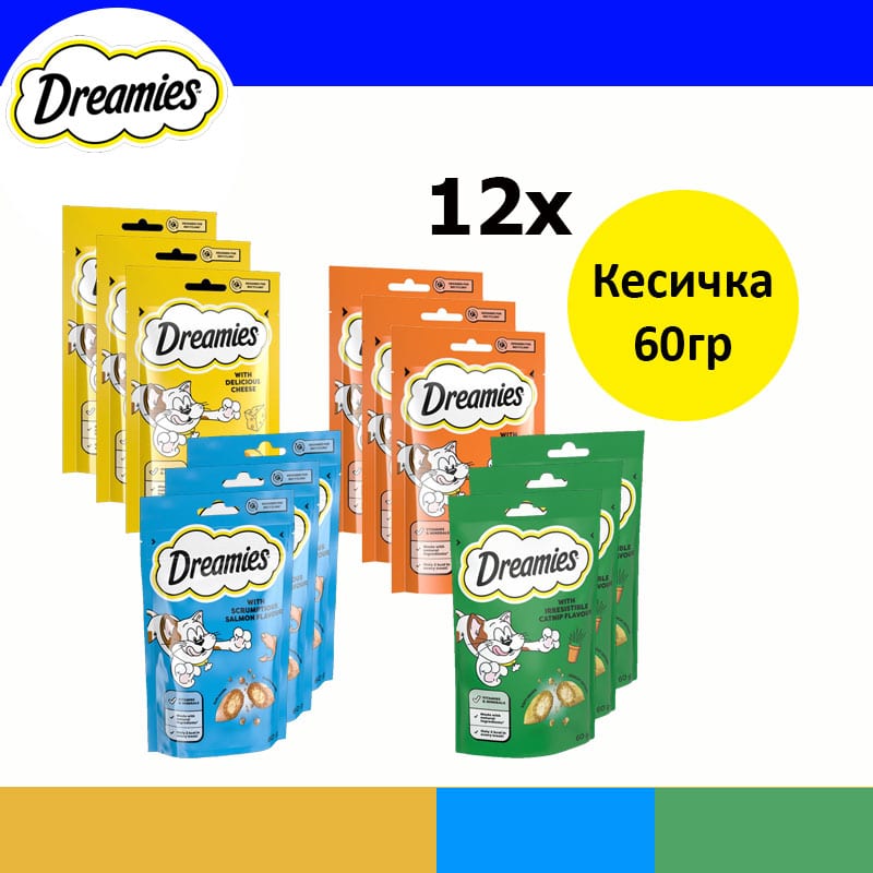Dreamies Favourites Награди за мачки со 4 разликни вкуса [сет 12x Кесичка 60гр]