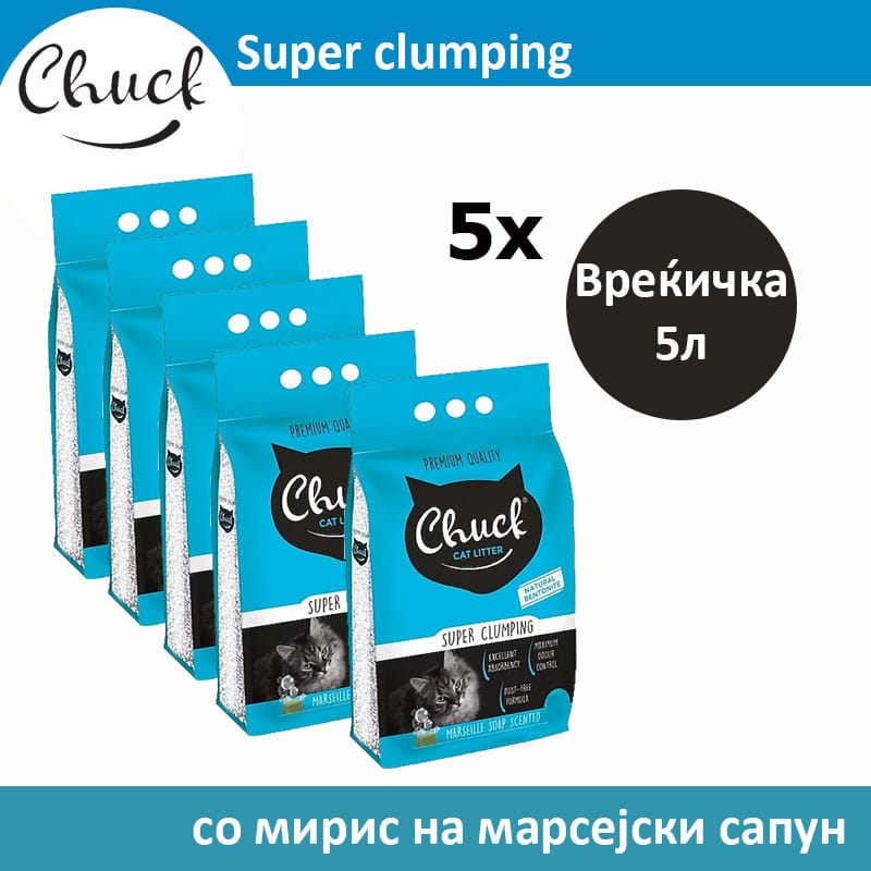 Chuck Clumping Песок за мачки со мирис на Марсејски сапун СЕТ 5х [Вреќичка 5л]