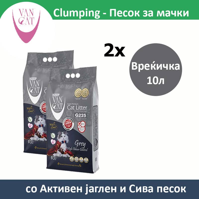 Van Cat Super Premium Песок за мачки со микс на Активен јаглен и Сива песок СЕТ 2х [Вреќичка 10л]